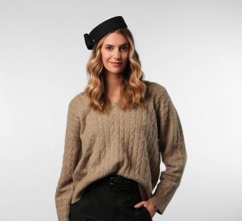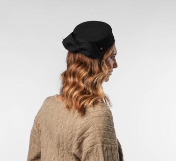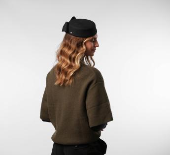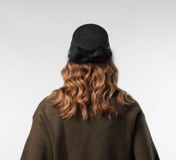Gecreëerd en vervaardigd in onze werkplaats in Lyon, getuigt dit model van uitzonderlijk vakmanschap. Elk detail, van het volume van de strik tot de perfecte stevigheid van het vilt, is nauwgezet bestudeerd. Lichtjes schuin gedragen, verfijnt het de houding van het hoofd en benadrukt het de persoonlijkheid. Een gedurfde tijdloze, even elegant als onvergetelijk.