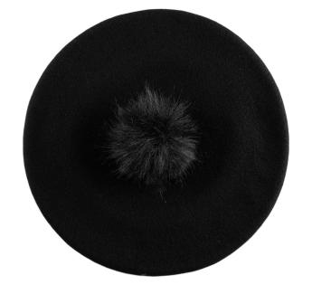 Gemaakt van pure merinowol, is deze Franse baret versierd met een speelse pompon, wat een vleugje fantasie toevoegt aan een klassieker die opnieuw is uitgevonden. De diepzwarte nep bont pompon contrasteert met de levendige kleur van het vilt.