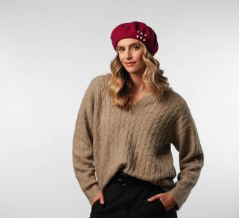 De eenvoudige lijn wordt versterkt door trimmen van parelmoeren kralen, wat een vleugje discrete en vrouwelijke chic toevoegt. Tussen retro-geest en hedendaagse verfijning past deze baret zich aan alle gelegenheden aan: een ogenschijnlijk eenvoudig accessoire, maar beslist elegant.