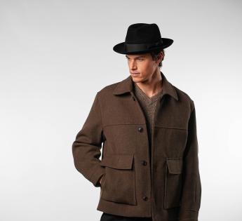 De tijdloze Fedora-vorm wordt versterkt door een vormbare ruwe snijkant, die naar beneden of omhoog kan worden gedragen, afhankelijk van de gewenste stijl. Een hoed die zowel verfijnd, technisch als veelzijdig is, ontworpen voor degenen die elegantie zonder compromis zoeken.