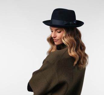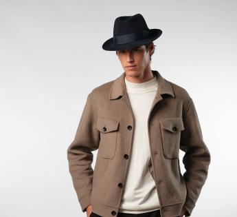 De tijdloze Fedora-vorm wordt versterkt door een vormbare ruwe snijkant, die naar beneden of omhoog kan worden gedragen, afhankelijk van de gewenste stijl. Een hoed die zowel verfijnd, technisch als veelzijdig is, ontworpen voor degenen die elegantie zonder compromis zoeken.