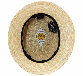 "Traditionele fabricage met behulp van een vlecht van stro die op een 'tourniquet' wordt geplaatst en genaaid.".