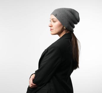 Dankzij de natuurlijke thermoregulerende eigenschappen van wol en kasjmier behoudt deze muts de ideale temperatuur zonder te laten zweten. Licht, ongevoerd, maar ongelooflijk warm, past hij zich aan alle hoofden aan dankzij zijn rekbare breisel. Een discreet label ondertekent dit stuk met soberheid, ontworpen om lang mee te gaan en je de hele winter met zachtheid te vergezellen.
