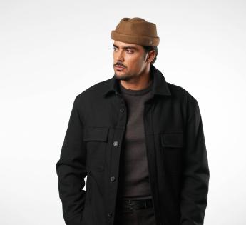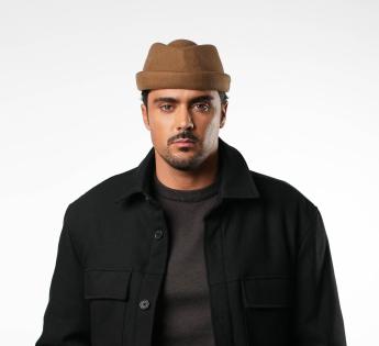 Eenvoud, stijl en vakmanschap zijn de sleutelwoorden. Dit hoofddeksel met een gedurfd ontwerp is het resultaat van nauwgezet werk in onze werkplaats in Lyon. Vanuit een Fedora hoed basis hebben we een hybride model gesculpteerd tussen de Dockermutsen en de toque, voor een moderne, grafische en perfect gestructureerde uitstraling. Het discrete metalen Label aan de voorkant benadrukt de identiteit van onze creatie.
