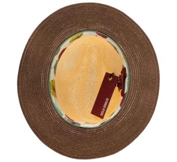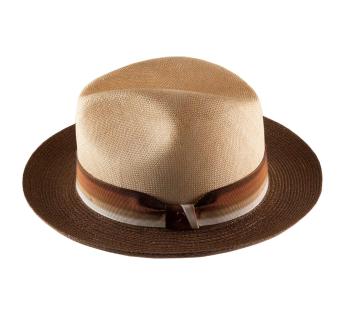 De elegante fedora is hier gemaakt met een middellange rand van hennep met een soepele en zachte textuur, die mooi contrasteert met de fijne sisalstro van zijn kroon. Het hoofddeksel heeft zo een nobel en gezond materiaal op een ontwerp dat zowel beroemd als klassiek is. Het is verfraaid met een bijpassende en vervagende hoedenband van satijn.