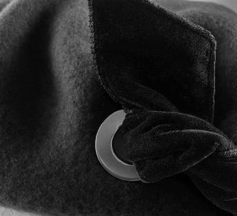 Deze heruitgevonden baret speelt met contrasten met lef en verfijning. De Baskische vorm, met een middelgroot snit, wordt getwist door een duo van sterke details: een met de hand gevlochten fluwelen strik en twee metalen oogjes die de silhouet moderniseren. Een subtiele balans tussen traditie en design, ontworpen voor een zelfverzekerde vrouwelijke uitstraling.