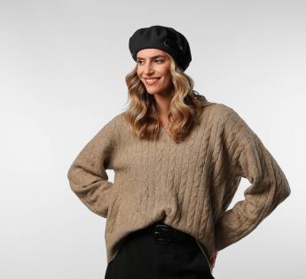 Gemaakt van pure Merinowol, biedt het een elegante en comfortabele pasvorm. De satijnen voering kleedt het interieur met finesse, terwijl elke afwerking de aandacht voor ambachtelijk vakmanschap weerspiegelt. Een accessoire met karakter, ontworpen om zowel de meest ingetogen als de meest gedurfde stijlen te versterken.