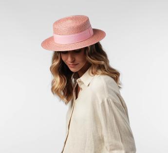Canotier hoed in zeer fijn gevlochten, voor meer duurzaamheid en elegantie. De vernis geeft een lichte verfrissende glans.
