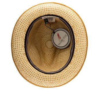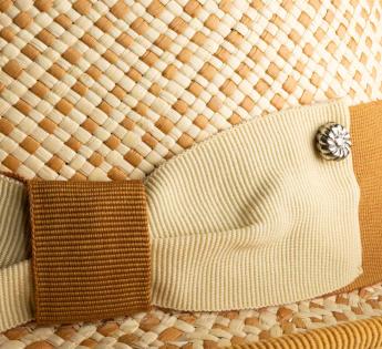 Authentieke Panama hoed met bicolor vlecht voor een origineel en elegant dambordpatroon. Het is chic en modern voor tijdloze looks gedurende het seizoen. De afwerkingen van zijn rand en hoedenband zijn afgestemd op de karamelkleurige stro, wat onze stijl zeker zal verbeteren. Het ontwerp is versierd met een discreet en elegant sieraad op de knoop.