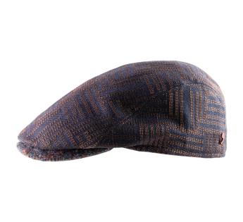 Platte pet vervaardigd uit een mooi spel van materialen en patronen die doen denken aan printplaten. Hoofddeksel met een unieke techno/retro stijl. Het heeft een vizier van wol dat contrasteert met de bovenkant. Geschikt voor alle geslachten. Wintermodel in een lichte maar warme mix. Het past goed op het hoofd voor een aangename draagervaring. De pet heeft een verfijnd ontwerp, gemaakt om lang mee te gaan.