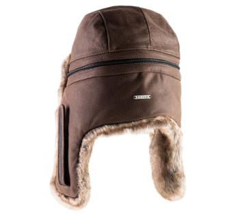 Deze Pilotenmuts van echt leer combineert stijl en bescherming tegen de kou perfect. Het gestructureerde leer zorgt voor een uitstekende weerstand tegen slecht weer, terwijl de synthetische bont een omhullende warmte en optimaal comfort biedt. De met bont gevoerde oorkappen bieden extra bescherming en kunnen onder de kin worden vastgemaakt voor een perfecte pasvorm.
