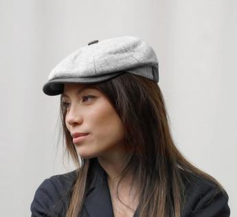 Gemaakt van onmisbare materialen voor de zomer, speelt deze pet met het contrast tussen de blauwe stof en het mooie imitatie leer van de vizier en de versierde knop. Het ontwerp onthult een Hatteras cap door zijn ruime vormen en Ierse stijl door zijn acht panels.