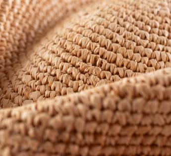 100% natuurlijke raffia stro, bekend om zijn soepelheid en natuurlijke uitstraling.