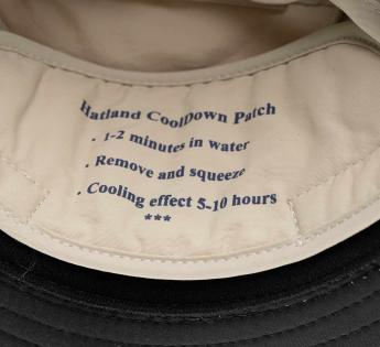 De afneembare verkoelingspatch is ongetwijfeld het slimste detail. Geactiveerd in water, verspreidt hij een langdurig verkoelend effect op het hoofd—bijzonder aangenaam tijdens blootgestelde tochten, lange wandelingen of op zeer warme dagen.