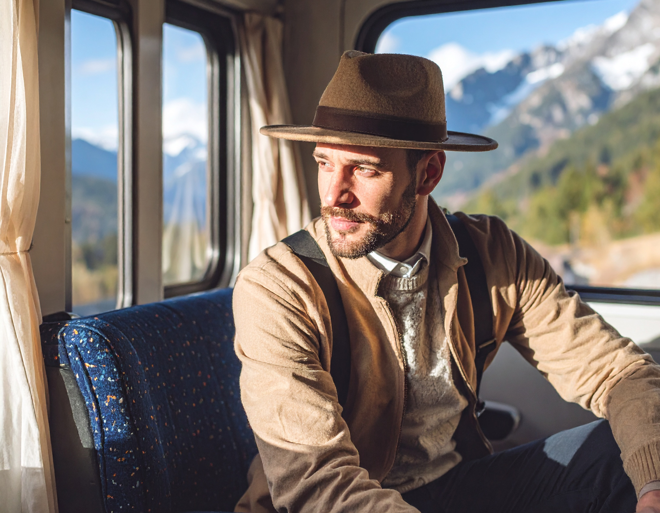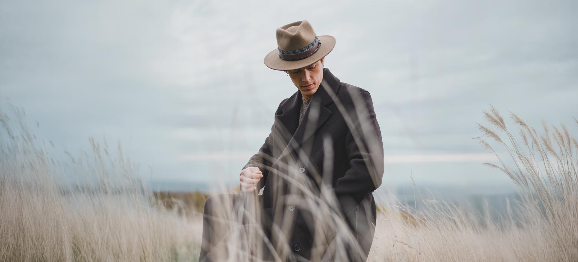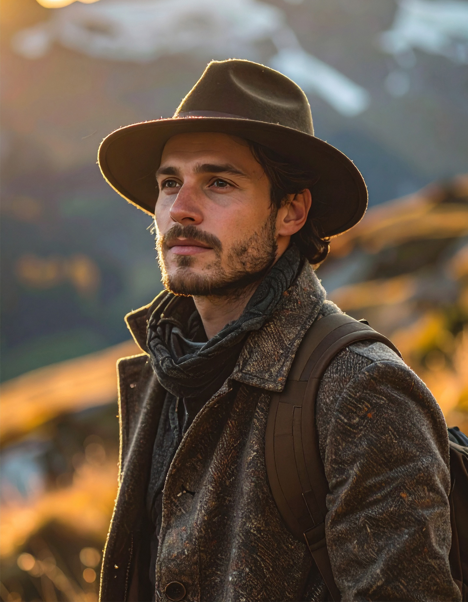 Zijn avontuurlijke erfenis mengt zich met stedelijke elegantie: een beschermende, functionele maar altijd verfijnde hoed.