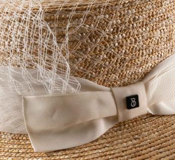Tijdloze canotier bedekt met sluier, symbool van elegantie, vrouwelijkheid en verfijning. Het model is versierd met traditionele en emblematische trimmingen, allemaal in een lichte uitvoering. Het is ambachtelijk genaaid van kwaliteitsstro en door getalenteerde handen. Het biedt bescherming in alle comfort en combineert zo praktisch met stijl.