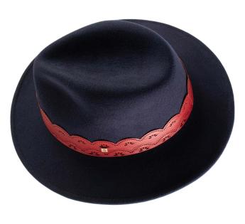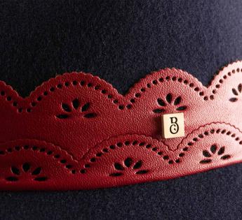 De hoedenband van imitatieleer, bewerkt als opengewerkt kant, voegt een vleugje zelfverzekerde vrouwelijkheid toe. Het intense contrast geeft een bohemien en rock chique energie. Het discrete Label markeert onze ambachtelijke creatie. Deze hoed belichaamt de perfecte balans tussen verfijning, originaliteit en vrijheid van stijl.