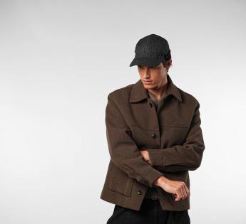 Pet met een vizier, volledig gemaakt van virgin wol voor een warme en comfortabele bedekking. Het is zelfs uitgerust met een opklapbare revers om de nek te bedekken. De stof met grote zigzagpatronen maakt het model eleganter en opvallender, zodat we meer stijl hebben.