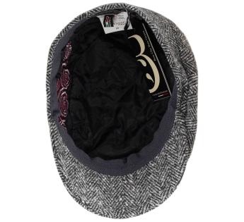 Gemaakt van wollen tweed, deze creatie heeft een tijdloos visgraatmotief, verfraaid met gestileerd bloemenborduurwerk. De cabillou vervangt de traditionele knop, wat een vleugje onderscheid toevoegt aan het profiel.