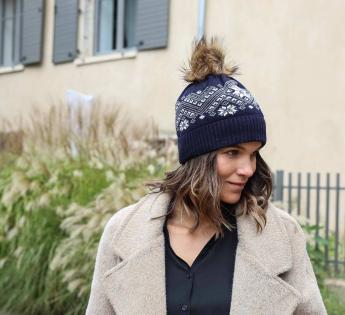 Ontdek deze long beanie, 100% gemaakt van gerecyclede materialen, waaronder wol en kasjmier. Een subtiele mix van patronen en contrasten geeft het een Scandinavische stijl, die de winter, sneeuwschoenwandelen en besneeuwde paden oproept. De omslag is met de hand genaaid en aan de binnenkant is een fleecevoering die de hele beanie bedekt.
