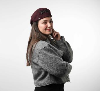 Aan de achterkant zorgt een verhoogd borduursel, vervaardigd in ons atelier, voor een sterke ontwerpershandtekening. Het 3D-patroon vangt het licht en onthult het volledige karakter van dit stuk, ontworpen als een op zichzelf staand accessoire. Deze Ivy flat cap belichaamt een kunst van detail, met een mix van grafische stijl en tijdloze geest.