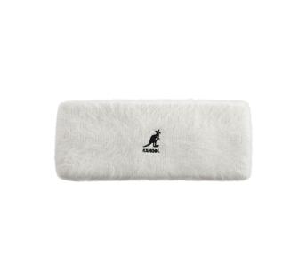 Hoofdband van langharig angora. Het kenmerkt zich door zijn warmte en zijdeachtige gevoel. Het logo van het iconische merk Kangol is op de voorkant geborduurd.