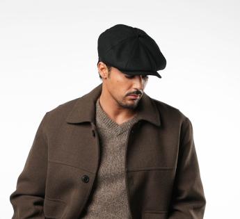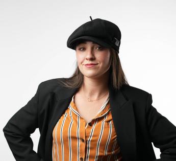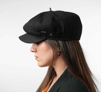 Deze pet herbekijkt de codes met lef. Het bovenste deel is opzettelijk gekanteld om het gebaar van de baret op te roepen, subtiel naar de zijkant gekanteld. Dit snitdetail, verre van triviaal, creëert een asymmetrische lijn vol allure, die de houding dynamiseert en een echte persoonlijkheid bevestigt. Het losse volume biedt structuur en comfort, terwijl het goed gehouden vizier het geheel verankert in een beheerst stedelijke stijl.