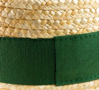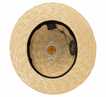 Canotier hoed van natuurlijke stro. Voor uw picknicks kunt u zeker rekenen op de brede randen om u te beschermen tegen de zon.
