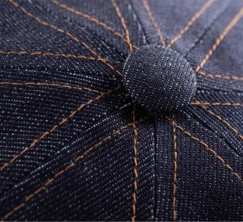 Deze 8 pans pet van denim geeft een gestructureerd silhouet, tussen Amerikaans erfgoed en een eigentijdse stedelijke garderobe. Het contrasterende stiksel benadrukt het karakter met precisie.