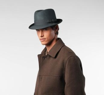 Een hoed met karakter, de homburg onderscheidt zich door zijn tijdloze elegantie en iconische silhouet.