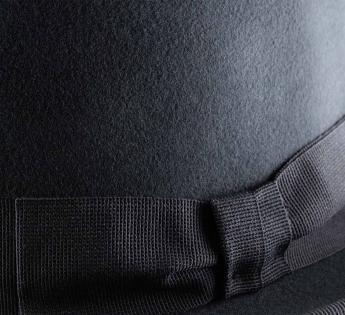 Gemaakt van natuurlijk waterbestendige gevilte wol, heeft dit model klassieke lijnen, verfraaid met een verfijnde zwarte band. Zijn traditionele vorm, zowel gedurfd als verfijnd, is een eerbetoon aan de Europese hoedenmakerij.