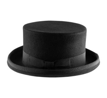 Een icoon van tijdloze elegantie, deze hoge hoed van gehard vilt belichaamt absolute verfijning. Met zijn rechte kroon, satijnen binnenafwerking en klassieke hoedenband van grosgrain, straalt hij een nobele en zelfverzekerde silhouet uit. Perfect voor grote gelegenheden, voegt hij een theatrale en verfijnde touch toe aan elke formele outfit.