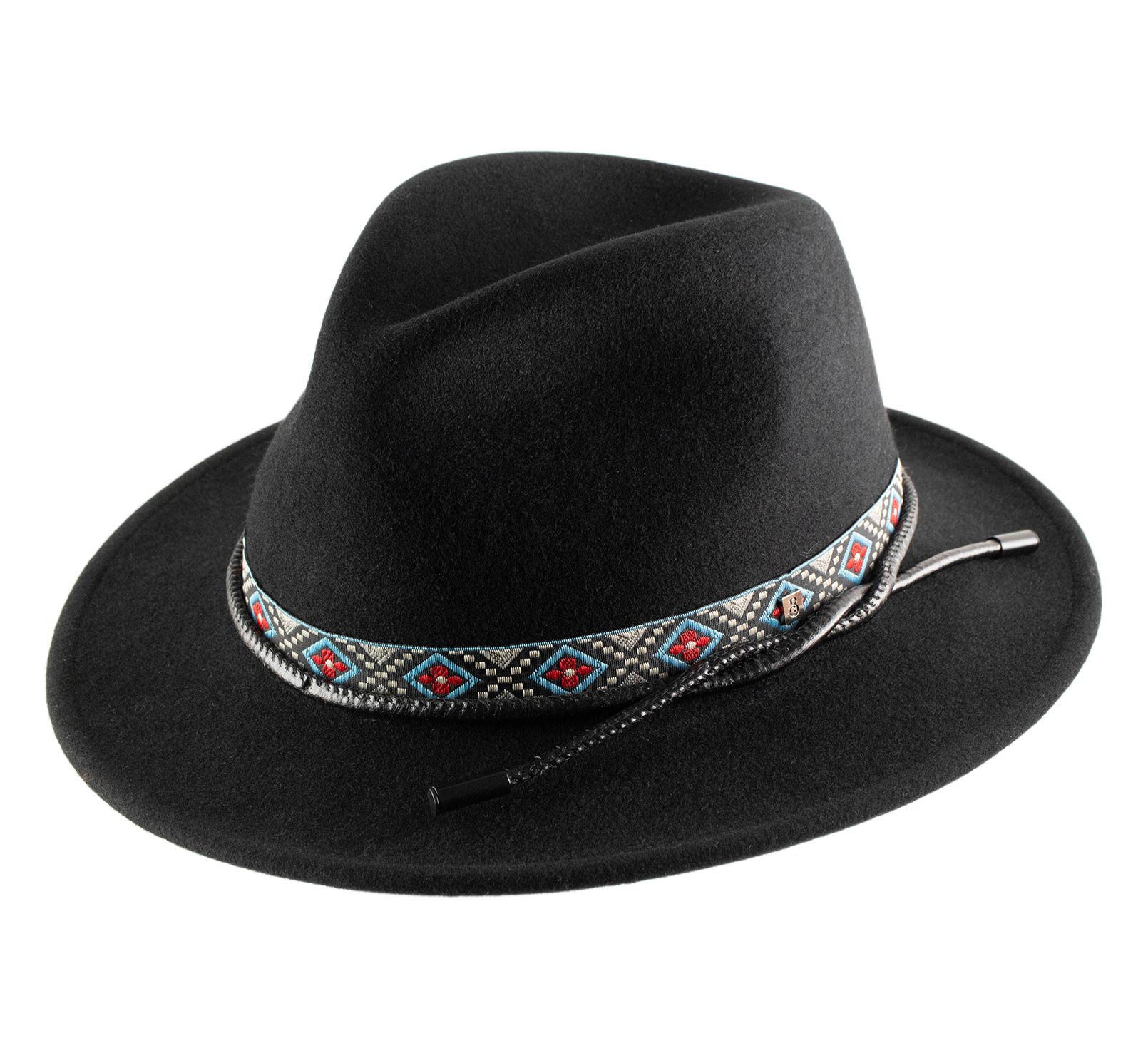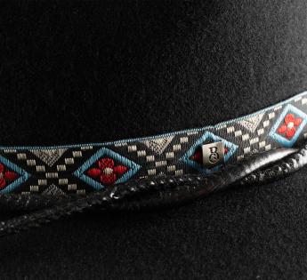 Zijn jacquard hoedenband met kleurrijke geometrische patronen roept de codes van de "wijze western" stijl op, getwist door een leren veter met metalen uiteinden. Het discrete Label ondertekent ons ambachtelijke vakmanschap. Een detail dat het verschil maakt. Een accessoire ontworpen voor liefhebbers van authenticiteit, mooie afwerkingen en duurzame stukken.