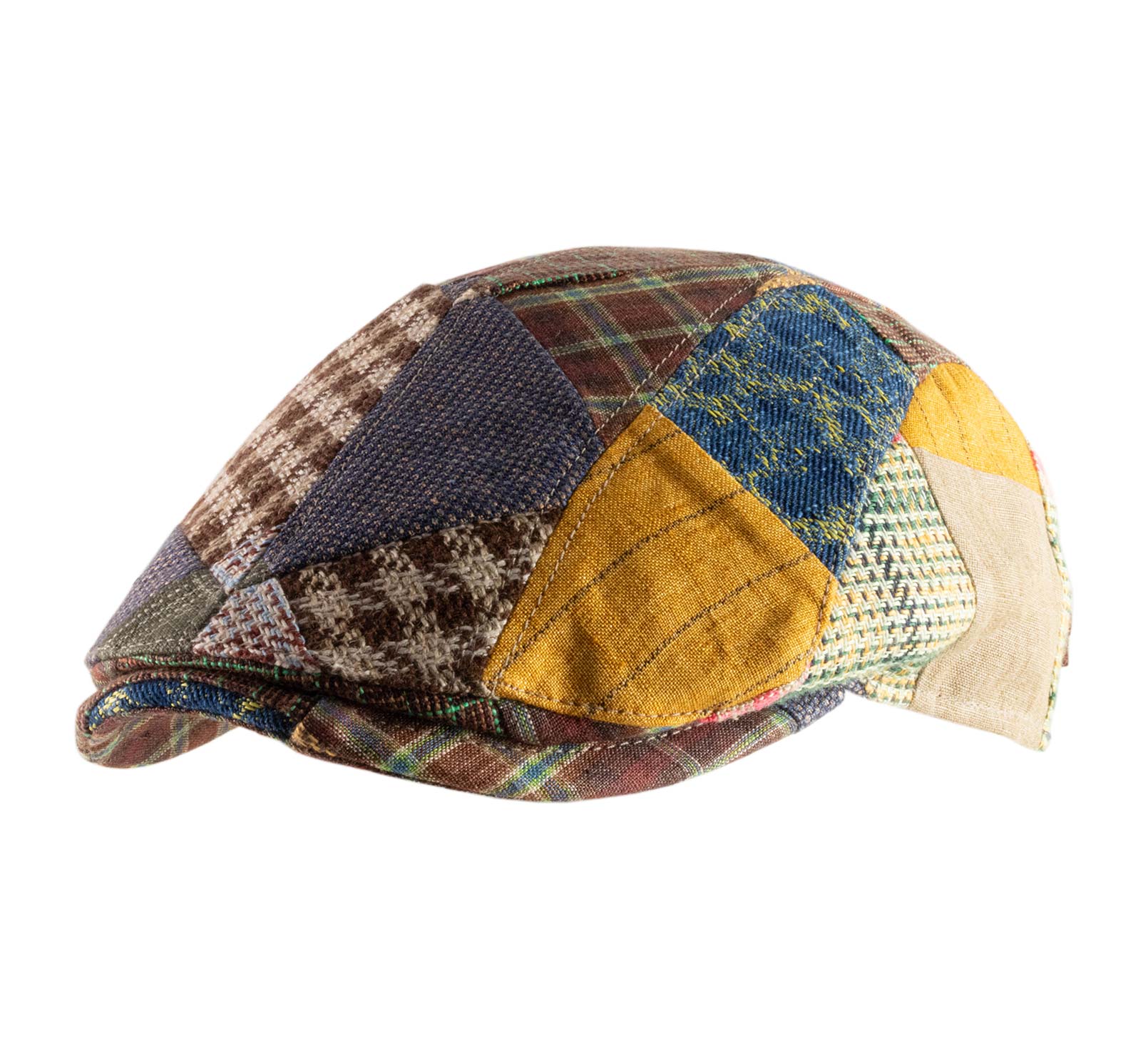 Pet gemaakt in een patchworkstijl en vervaardigd in een gebogen vorm. De platte pet is gemaakt van linnen dat op verschillende manieren is geweven. Het geheel biedt een kleurrijke uitstraling, met verschillende patronen, voor een rustieke en tijdloze look. Het model zorgt voor een aangenaam draagcomfort dankzij de absorberende en ademende eigenschappen. Onmisbare pet in de mode, die perfect ontspanning en elegantie mengt. Het zal je look zeker verbeteren.
