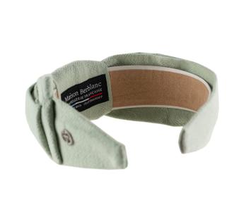 Vervaardigd in ons atelier, speelt dit hoofdjuweel met het perfecte evenwicht tussen Hoofdband en tulband. De dubbele, gedraaide knoop in linnen, subtiel asymmetrisch aan de zijkant, geeft het een unieke uitstraling: elegant zonder stijfheid.