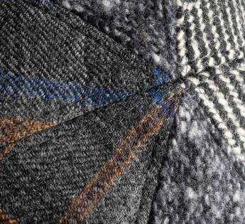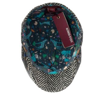 Wollen pet in patchwork-stijl met een kroon bestaande uit zes identieke panels in paren. De verschillende patronen, zigzag en ruiten, bieden een aangename combinatie met een elegante uitstraling. Deze winterse versie van de platte pet biedt tegelijkertijd een goede thermische bescherming, waardoor we het seizoen met een gerust hart kunnen doorbrengen.