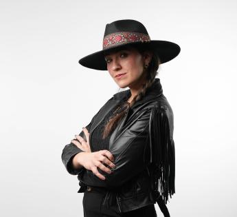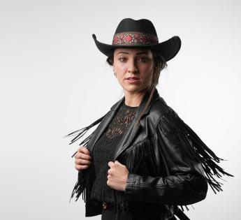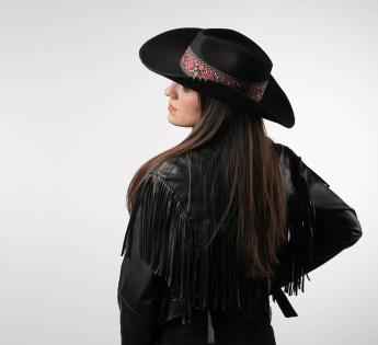Western hoed met een bohemien stijl, vervaardigd in ons atelier in Lyon. Gemaakt van Italiaans wol vilt, warm en van nature waterbestendig, valt hij op door zijn brede, latte-kleurige rand die kan worden aangepast aan de gewenste look. Een ambachtelijke creatie ontworpen om de winter met elegantie en karakter te trotseren.