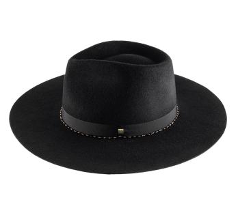 De bijpassende gros-grain trim is verfraaid met een fijne ketting, versierd met kleine delicate parels. Een waar discreet juweel, het verlicht de hoed met elegantie. Het metalen label ondertekent dit uitzonderlijke model, terwijl de bijpassende voering in satijn zorgt voor onberispelijk comfort. Deze fedora is het pronkstuk van een verfijnde en gedurfde stijl.
