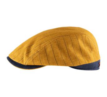 Platte pet met een zonnige uitstraling in warme en vrolijke tinten. De stof in Cambodja-geel is gemaakt van een semi-rigide materiaal met trimmmen in denim. Een levendig model dat stijl en originaliteit aan onze outfits zal toevoegen en dat een mooie unisex finishing touch vormt.