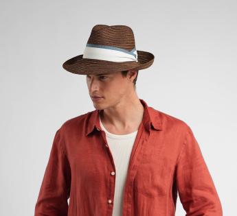 Tijdloze elegantie en moderniteit verweven zich in deze uitzonderlijke fedora.
