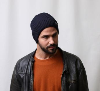 Korte muts met drievoudige omslag, gebreid en met een klassieke uitstraling die ribbels en uitsteeksels afwisselt. Een aantrekkelijke tegenstelling die een zacht en warm ontwerp bedekt om uitjes te vergemakkelijken, beschermd tegen de slechte verrassingen van de winter. Het model is verfraaid met het leren merklabel.