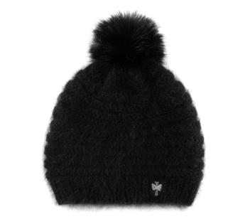 Zachtheid en winterse elegantie voor deze muts, gebreid in Frankrijk van een lichte en zachte angoramix. Het pluizige breisel biedt een zijdezachte aanraking en een comfortabele warmte, perfect voor koude dagen. De pompon van synthetisch bont voegt een vrouwelijke en verfijnde touch toe.