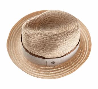 Deze Player hoed van abaca charmeert door zijn lichte, luchtige, soepele en sterke materiaal, perfect voor het seizoen. De sobere trimmen combineren linnen met een hoedenband in verouderd lederlook in chocoladetinten, wat precies de juiste warmte toevoegt aan dit verfijnde en elegante geheel.