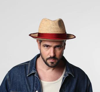 Praktisch en zomers, deze hoed onderscheidt zich vooral door zijn opvouwbare karakter. Het zal dan ook gemakkelijk zijn om hem te vervoeren, zonder dat je hem altijd in je hand hoeft te houden. Hij is verfraaid met afwerkingen met satijnen randen in karmijnrood, passend bij zijn trimmingen. Een model met een Fedora-vorm om stijl aan onze outfits van het seizoen te geven.