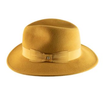 Traveller hoed 100% Frans. Hij is vervaardigd in onze ateliers in Lyon met vilt van zijdeachtige en hoogwaardige konijn. Het geheel valt op door zijn elegantie en lichtheid, terwijl de kroon met een opening is versierd met een hoedenband van satijn.