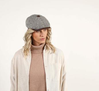 Discreet volume door een gemêleerd effect voor deze pet met acht panels. Het is een Hatteras met, als afwerking, een vizier die past bij de knop in imitatie leer. Het kan worden gecombineerd met onze elegante of casual outfits om ze te verfraaien, te verbeteren en te completeren voor allerlei gelegenheden.