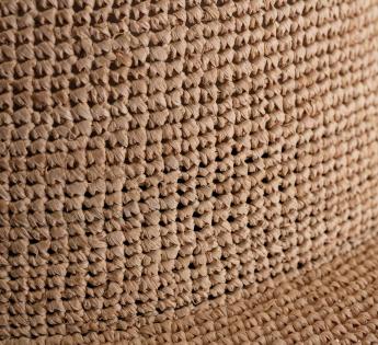 100% Raffia stro, een natuurlijke vezel die gewaardeerd wordt om zijn lichtheid en authentieke charme.