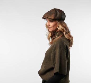 Een platte pet met wat volume, maar die niet aan de zijkanten opent. Gemaakt van hoogwaardig versleten leer, biedt het een elegante en tijdloze uitstraling. Het textuuroppervlak, met tinten bruin, voegt karakter en authentieke charme toe. De onderkant van de vizier is bedekt met een stuk tweed dat een persoonlijke touch aan het geheel geeft. Niet alleen weerbestendig en duurzaam, deze pet is ook waterbestendig, waardoor hij ideaal is voor alle seizoenen, zowel in de winter als in het tussenseizoen. Een chique en functionele accessoire om het hele jaar door te dragen.
