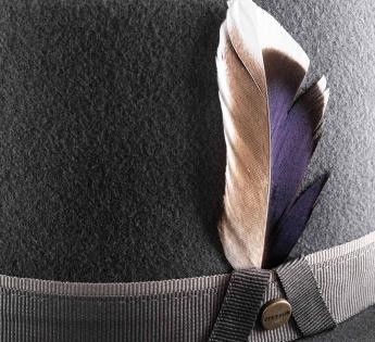 Zijn grosgrain hoedenband, versierd met een delicate assemblage van veren en een discreet metalen Label, voegt een vleugje karakter toe zonder opzichtige uitstraling. Een veelzijdig model met een goed gedefinieerde stijl, ontworpen voor degenen die mooie materialen en zorgvuldige afwerkingen waarderen.
