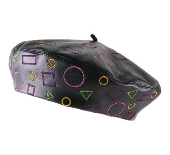 Gemaakt van 3 stukken leer die zijn samengevoegd tot één, deze opmerkelijke baret heeft unieke afwerkingen. Geometrische vormen in verschillende kleuren maken deze klassieke baret prachtig om je outfit op te fleuren. Een weelderige mix van traditie en moderniteit voor een magische look.